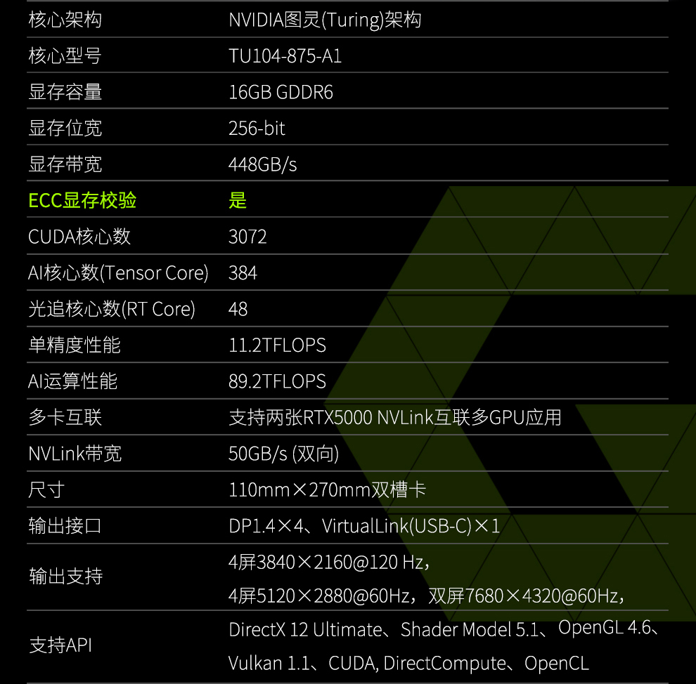 英偉達 NVIDIA Quadro RTX5000 專業(yè)顯卡