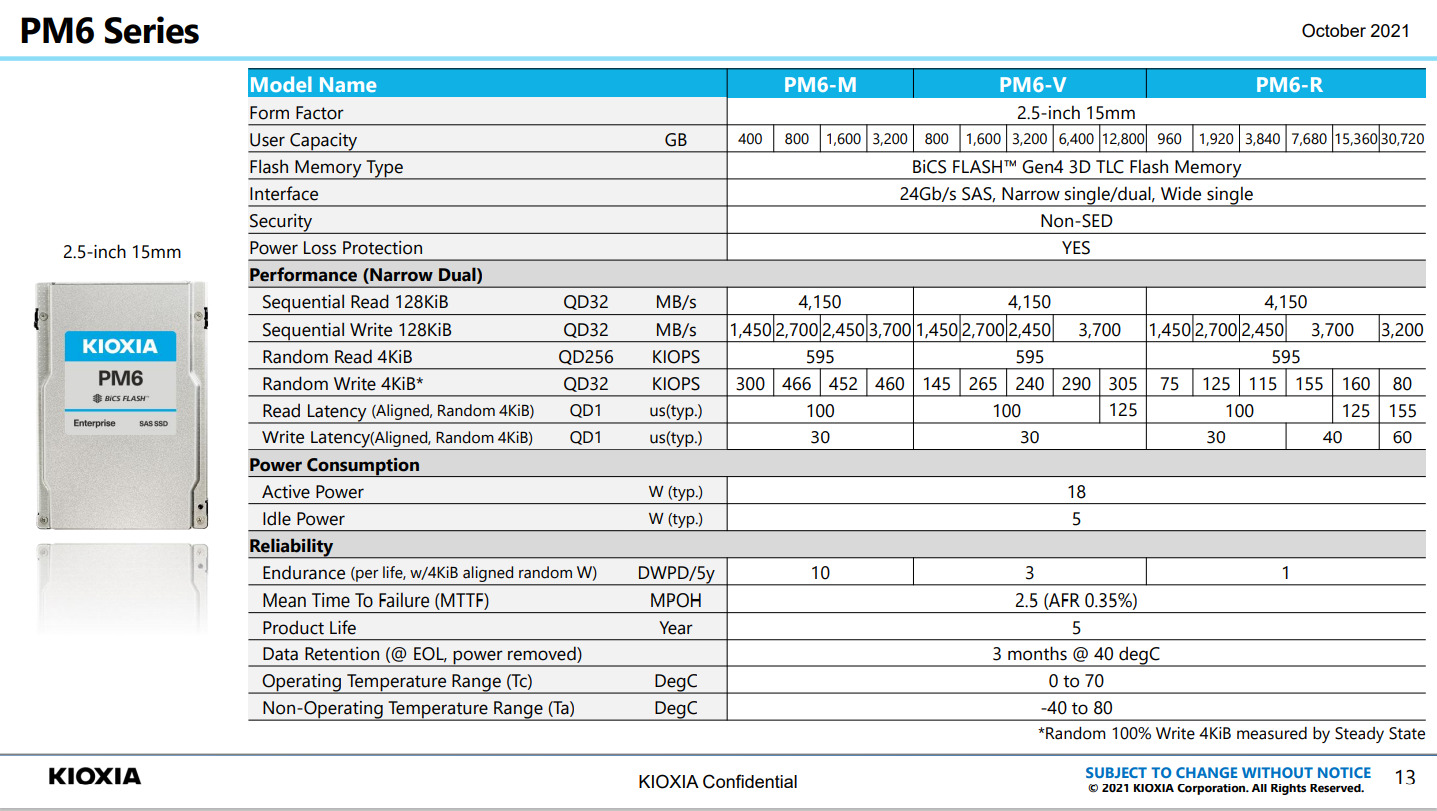 KPM61RUG7T68鎧俠PM6-R 7.68T SAS 24G企業級固態硬盤