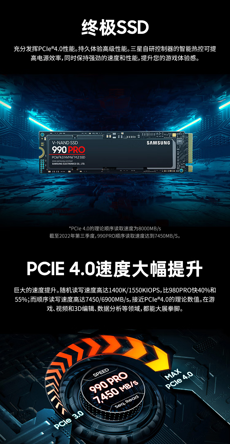 MZ-V9P4T0BW三星990 PRO 4T M.2 NVMe PCIe4固態(tài)硬盤