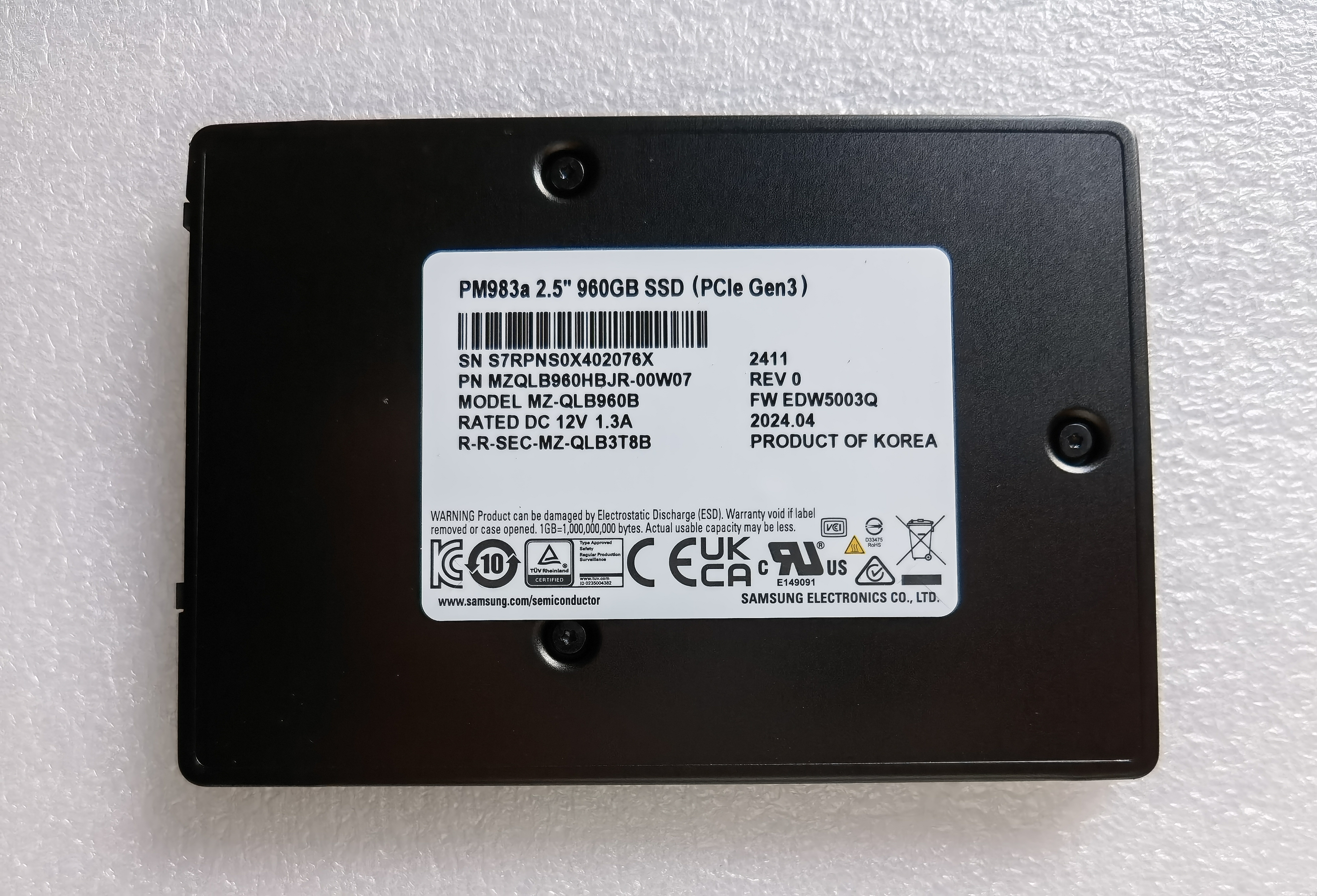 MZQLB960HBJR-00W07三星PM983A 960G U.2 NVME企業級固態硬盤