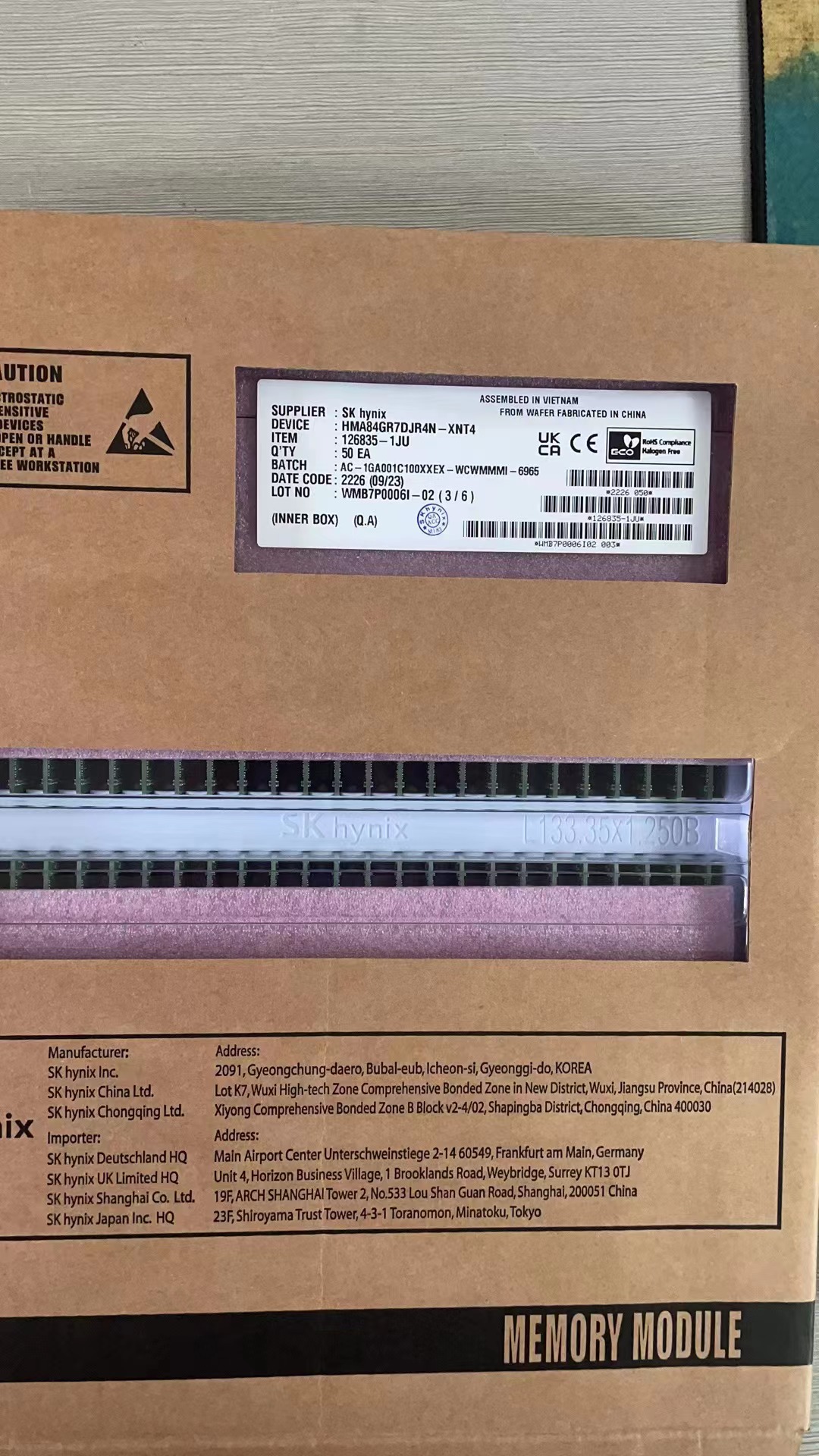 HMAA4GR7CJR8N-XN海力士DDR4 32G 2RX8 3200 RECC服務器內存